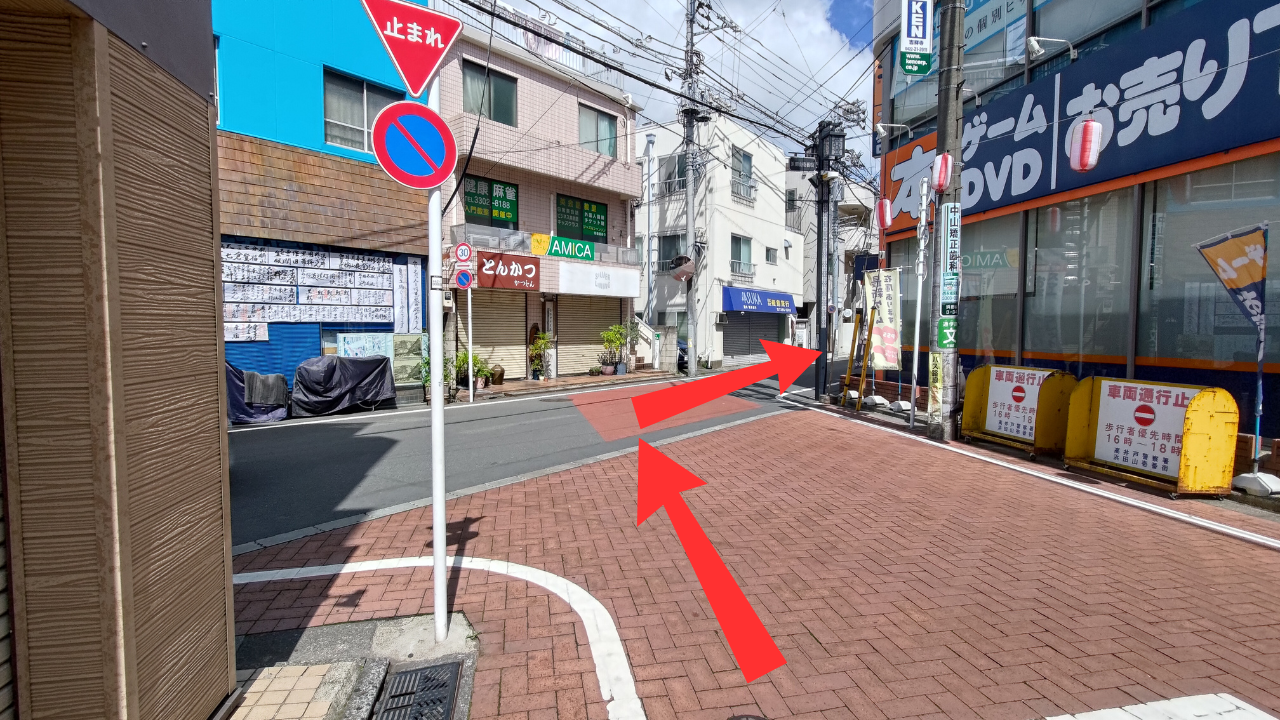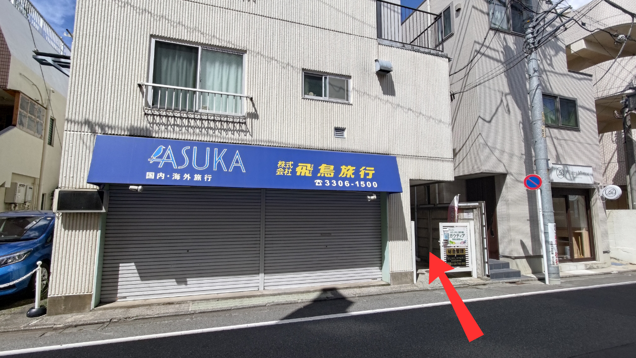 4. 4曲がってすぐ、左手にある建物が内藤ビルです。建物奥にある階段で2階にお越しください。