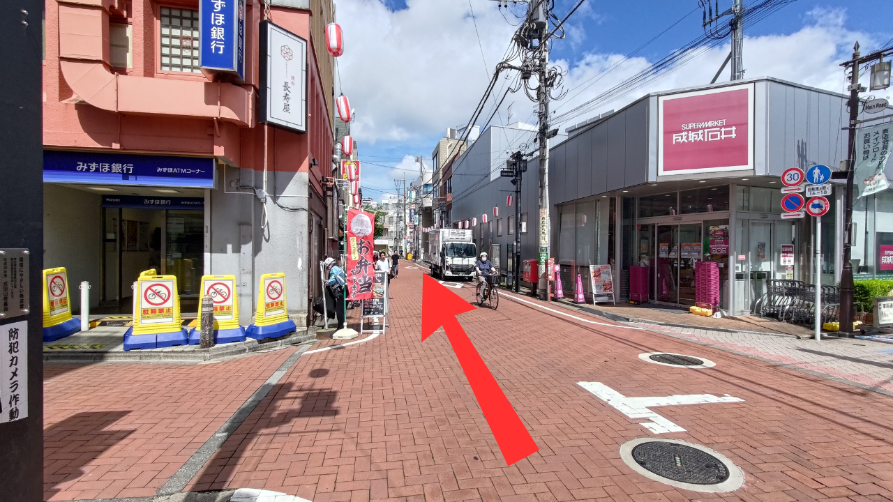 1. 1改札をでて地上にでたら、駅を背にして左手方向に進みます。