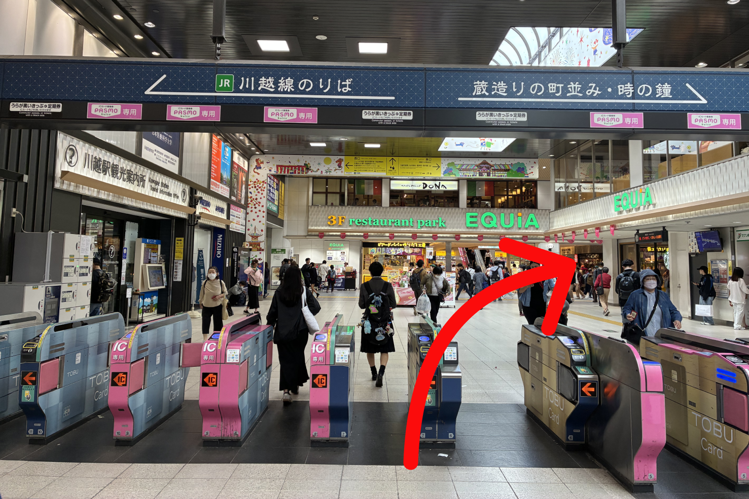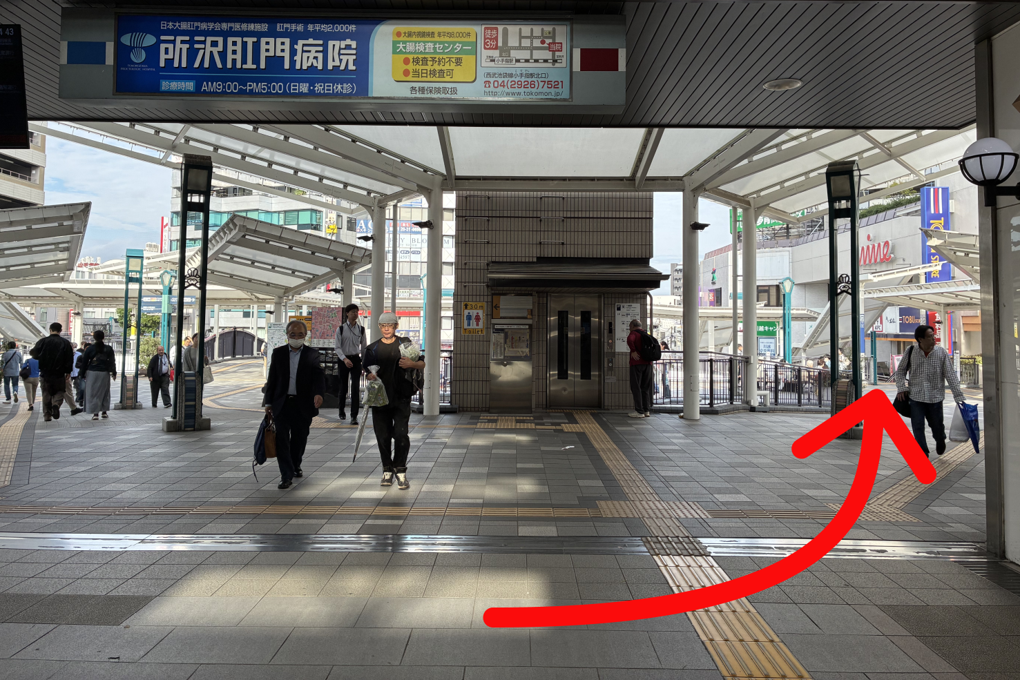 1改札を出たら、右に進んでいきます。(JR改札の場合も右手に進んでいきます)