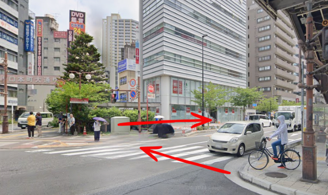 4川口駅東口交差点を渡って、右に曲がり直進します