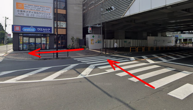 2交差点を渡り、ウエルシア武蔵小金井駅前店を目印に左折して進みます
