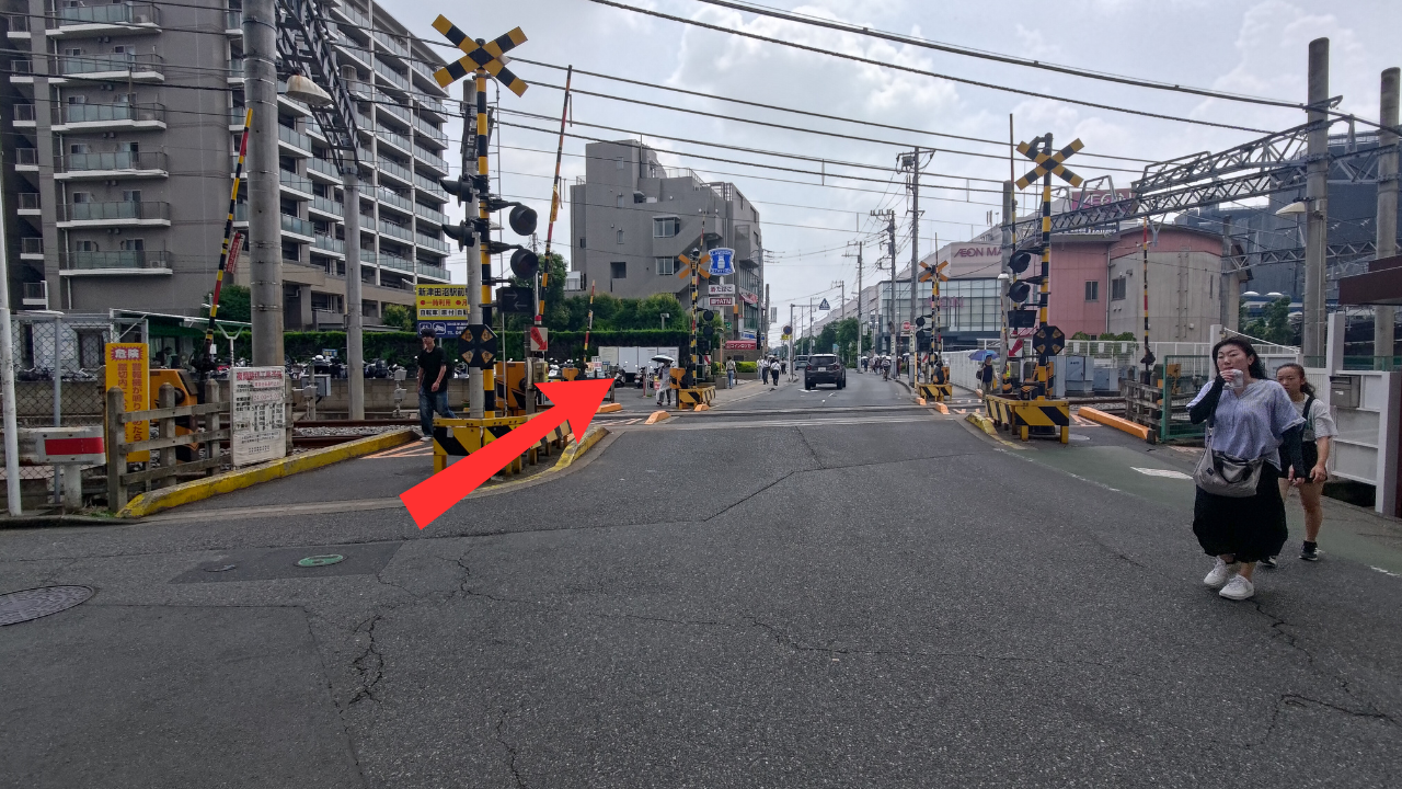 6. 6踏切を渡り、さらに道なりに直進します。